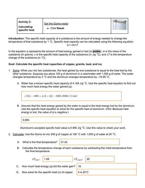 Reading Online Gizmo Answer Key Calorimetry Lab Nook BookBoon